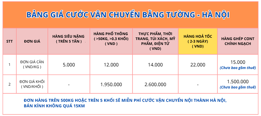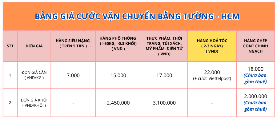 - Hàng ghép cont chính ngạch: Ổn định 5-7 ngày hàng về, nhận khối lượng từ 200kg trở lên hoặc 2 khối trở lên, giá vận chuyển chưa bao gồm VAT và thuế nhập khẩu